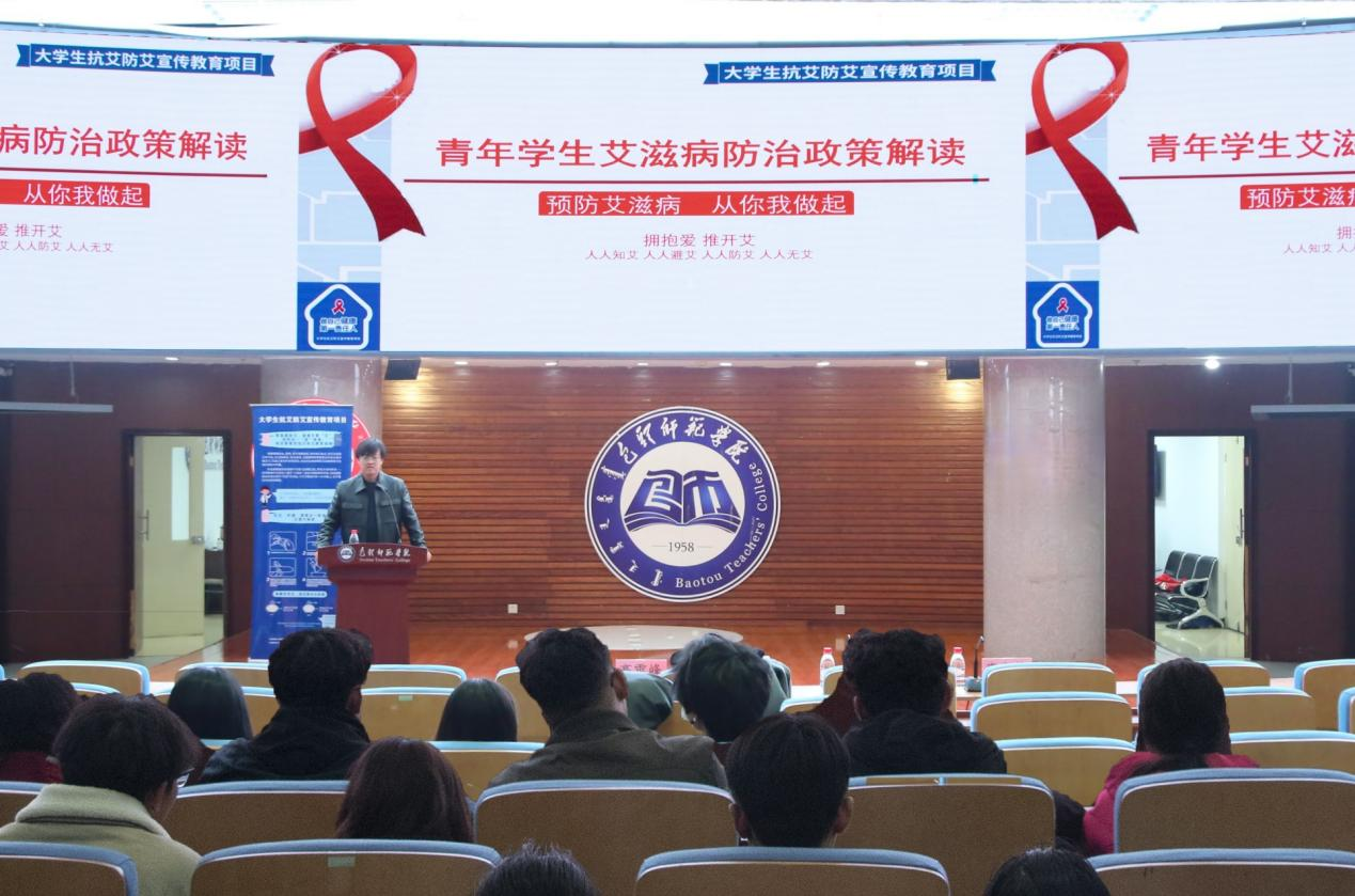 随后,高雪峰副研究员为现场师生开展了防艾知识及政策专题讲座。他围绕艾滋病的传播途径、预防措施、检测干预等方面进行了深入讲解,帮助同学们科学应对、消除恐惧。