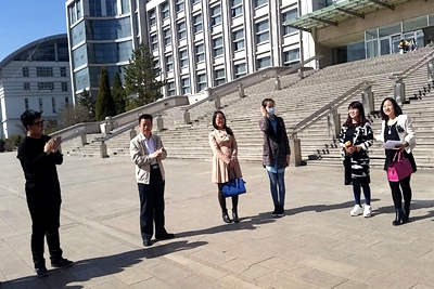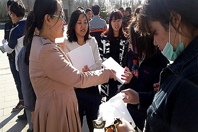 为提高班级同学的凝聚力和集体意识,促进大学生身心健康发展,发扬团队协作互助的精神,更好使同学们走下网络、走出宿舍,4月7号下午,信息学院14级服务外包三班在博学楼前举办了以“走出宿舍,走向集体”为主题的室外主题班会活动。信息学院副书记、副院长郭宏升、副院长张为,任课教师夏玉芹、杨丽萍,辅导员徐丹、陈超以及安博教育集团的靳静、张婷老师参加了活动。主题班会由班主任蔡广艳老师主持。