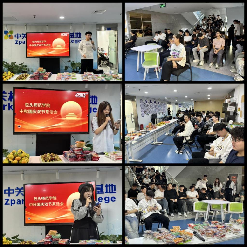 金秋送爽,丹桂飘香,在中秋与国庆双节来临之际,为让远在异乡实训的学子感受节日温暖、厚植爱国情怀,9 月 28 日,中关村软件园人才基地在 9 号楼实训场地,为包头师范学院 22 级信息科学与技术学院、物理科学与技术学院实训学生精心举办 “迎中秋・庆国庆” 双节茶话会。中关村软件园人才基地相关负责人、实训导师及近百名包头师范学院学子共同参与,在欢声笑语中共叙家国情怀,共度美好时光。