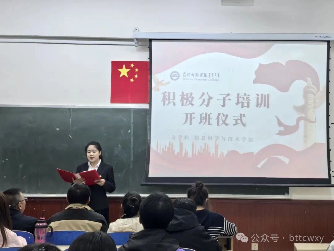 仪式伊始,文学院党总支书记赵洪宝做动员讲话。他指出,作为高校青年学子,既是传承文化、创新技术的生力军,更是肩负民族复兴重任的接班人。全体学员要以本次培训为契机,筑牢思想根基——将学习习近平新时代中国特色社会主义思想作为首要政治任务,结合学科特点从党史、改革开放史、社会主义现代化建设史中汲取力量,深刻领悟“两个确立”的决定性意义,不断增强“四个意识”、坚定“四个自信”、做到“两个维护”;要锤炼品德修为——以党员标准严格要求自己,践行社会主义核心价值观,在学习中求真务实、在生活中传递正能量,展现入党积极分子的先进性;要坚持知行合一——把理论学习与实践锻炼相结合,积极参与主题党日、社会调研等活动,立足专业优势为国家发展贡献力量,用实际行动践行对党的忠诚。