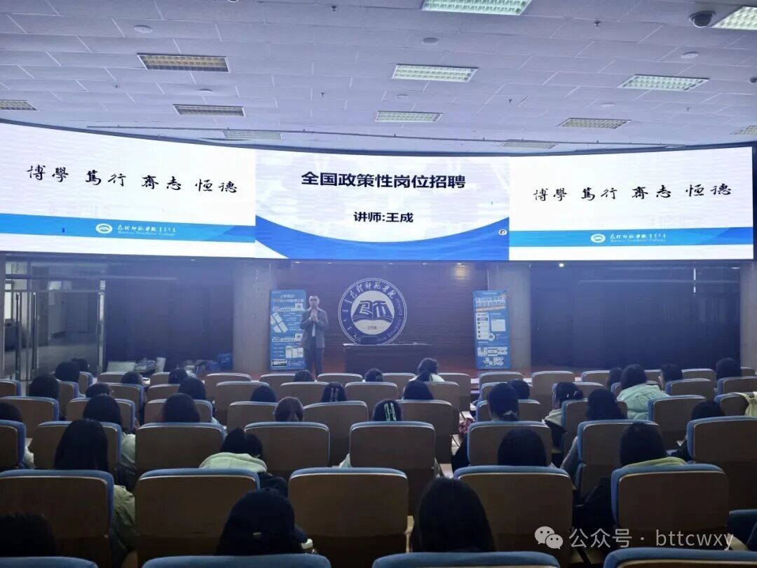 随后,王成老师聚焦公务员考试核心主题展开分享,围绕报考流程关键节点、热门报考项目、资格审查注意事项、面试礼仪及答题逻辑等学子关切的问题,结合典型案例展开系统讲解,深入剖析了常见误区与应对策略,内容翔实,深入浅出,令在场同学们受益匪浅。互动环节中,王成老师精选典型考公真题,以提问作答的形式与同学们深度交流,现场氛围热烈。最后,王成老师还为同学们提供了待遇优厚的就业岗位,鼓励同学们积极加入新途径。