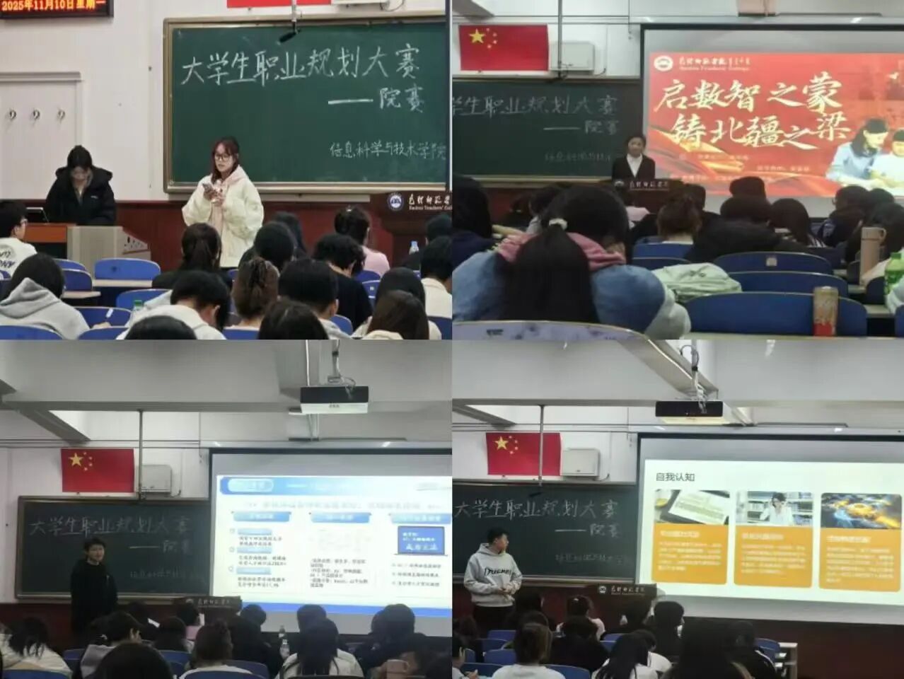 11月10日晚,博学楼600教室内灯火璀璨、气氛热烈,信息学院大学生职业规划大赛院赛在此隆重举行。经过前期AI智能筛选与专业评审的层层遴选,来自全院各专业的12名选手从569名参赛者中脱颖而出,在院赛的舞台上展现出当代信息学子清晰的职业认知与昂扬的青春风采。