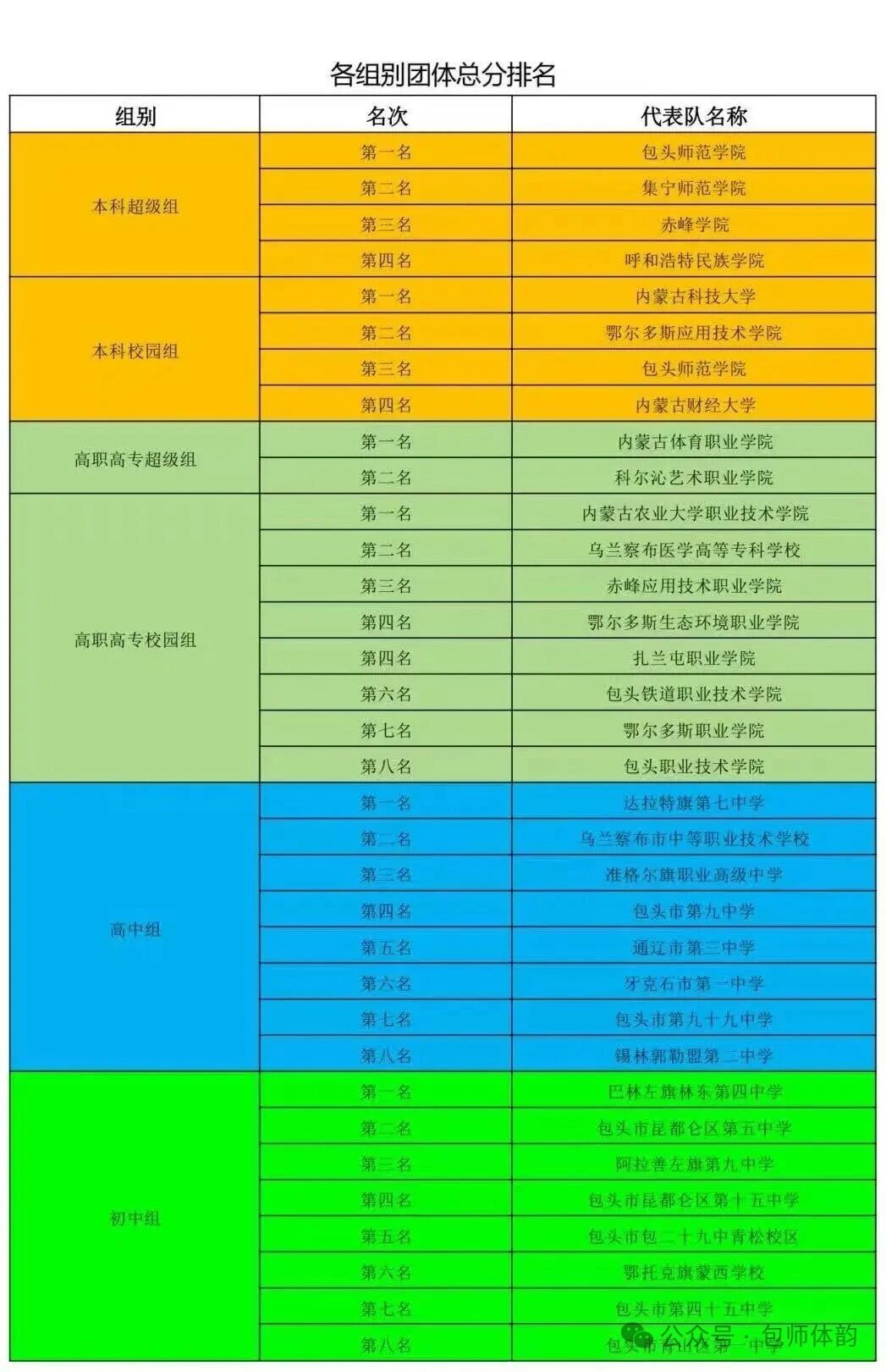 本次赛事由内蒙古学生体育协会跳绳专项委员会提供专业支持,设置团体赛、个人技术赛、花样赛三大类别共十六个小项,覆盖本科、高职高专、高中、初中四个组别,我校学子不负众望,在赛场上奋勇拼搏、默契协作,以精湛技艺和昂扬斗志斩获多项荣誉,充分展现了包师院学子卓越的体育素养与团结奋进的精神风貌。